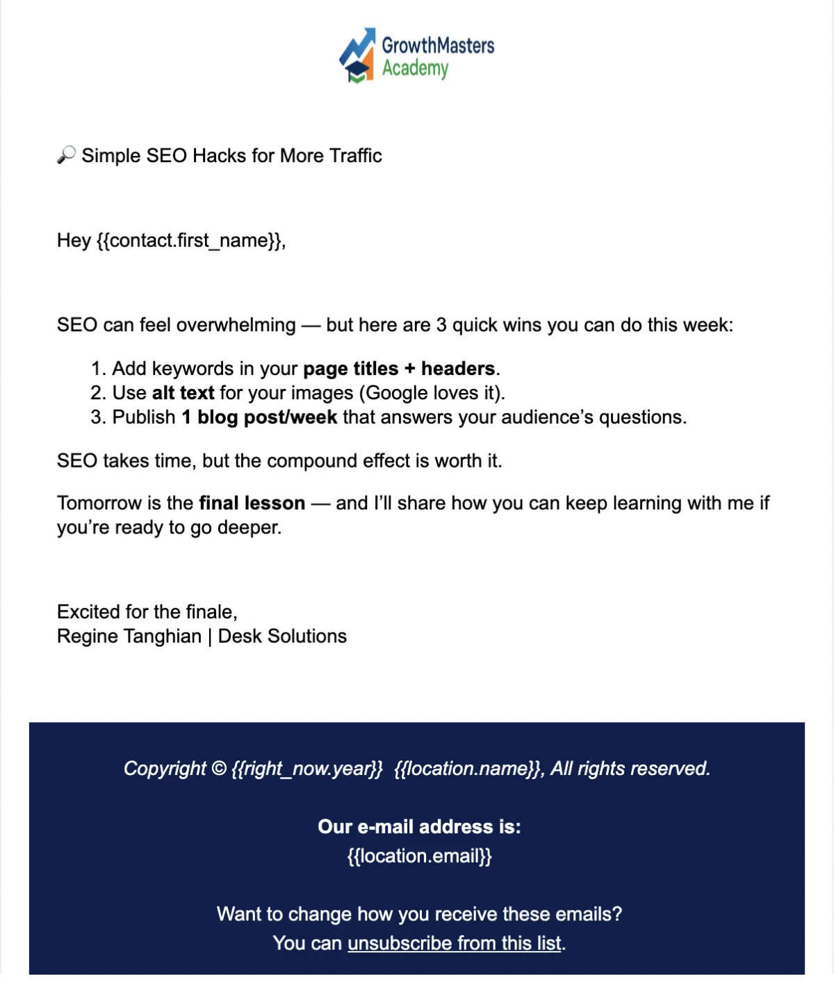 I’m still growing my skills every day, and these are the areas I’m learning on right now. I’m not an expert yet, but I’m excited to learn more and get better as I go with the help of the GHL Champs Community and of our excellent coaches.